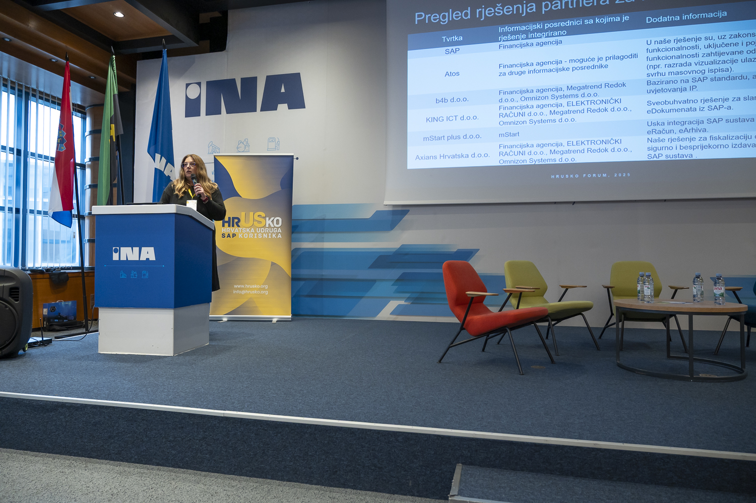 HrUSKo forum otvorila je Sandra Mikuš, predsjednica HrUSKo-a, koja je predstavila aktivnosti Udruge u 2025. godini, uključujući radionice posvećene S/4HANA migracijama, ESG regulativi, BI izvještavanju te EUDR uredbi. Sudionike je pozdravila i Tadeja Pačnik Sajovic, direktorica SAP Hrvatska.