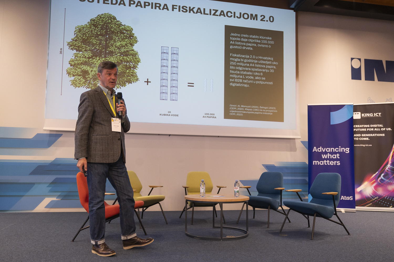 U završnom dijelu programa Goran Ladišić je predstavio startup Project O2, inovativan koncept pošumljavanja dronovima. HrUSKo je ovom prilikom donirao sredstva za sadnju novih stabala, a pozvali su i sve korisnike da se priključe ovoj društveno odgovornoj akciji. Prezentacija je kreativno povezala temu Fiskalizacije 2.0 s održivim razvojem, ukazujući na povezanost između uvođenja eRačuna sa smanjenjem broja ispisanih računa i zaštitom šuma i voda.