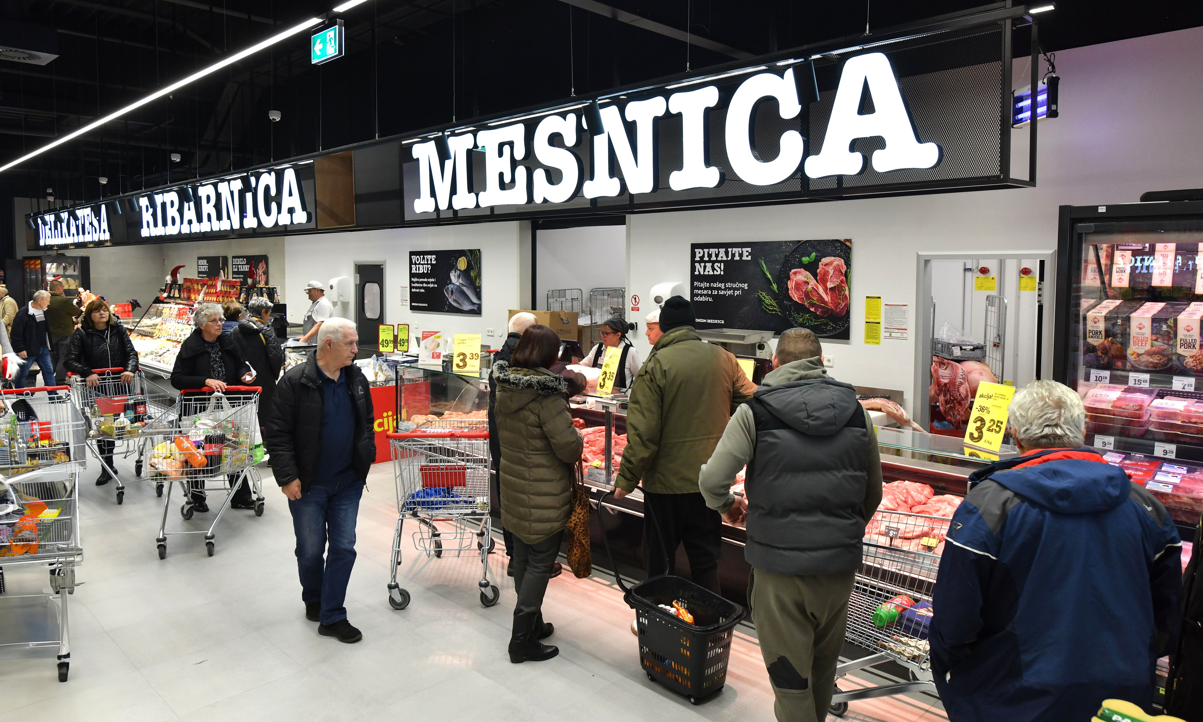 Kupcima je na raspolaganju širok izbor odjela – mesnica s ponudom rinfuznog i pakiranog mesa, bogato opremljena ribarnica, delikatese, velika pekarnica te gastro odjel s raznovrsnim dnevno pripremljenim jelima. Na ulazu se nalazi veliki odjel vina, kao i bogata ponuda mliječnih proizvoda, OPG asortimana te to-go artikala. Posebno se ističe i opsežna ponuda sezonskih proizvoda.