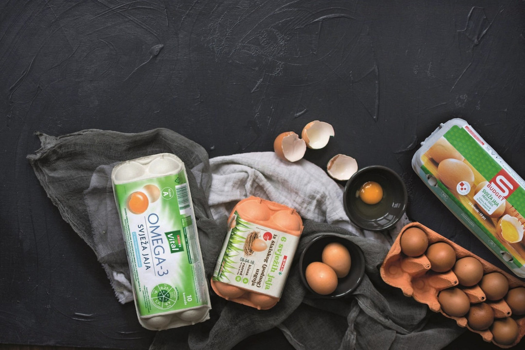 Kupci, ovisno o svojim potrebama, u SPAR-u i INTERSPAR-u mogu pronaći jaja u klasičnim pakiranjima od 6 ili 10 komada, ali i u velikim pakiranjima od 30 komada. U bogatom asortimanu nalaze se i Vital jaja bogata OMEGA 3 masnim kiselinama.