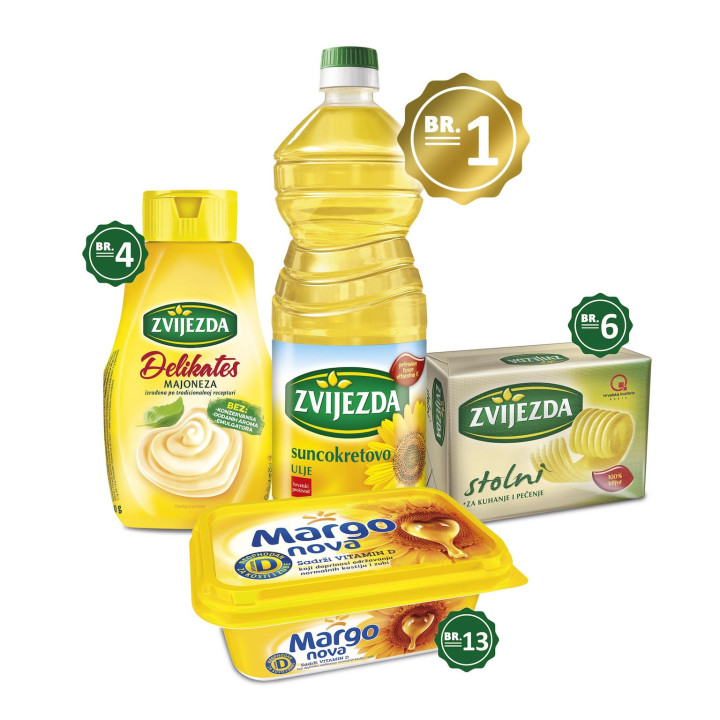 Osim suncokretova ulja, na vrhu liste brandova u TOP 15 brandova kojima potrošači najviše prepoznaju, koriste i biraju nalaze se još i Zvijezda majoneza na četvrtom mjestu, Zvijezda tvrdi margarin na šestom, te Margo na 13. mjestu.