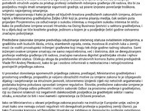 U proceduri donošenja spomenutih prijedloga zakona, predlagač, Ministarstvo graditeljstva i prostornog uređenja, propustilo je valjano obrazložiti motive za izmjene zakona te je izbjegavalo dijalog i savjetovanje sa stručnom javnosti, istovremeno iznijevši cijeli niz netočnih argumenata i podataka kojima pokušava opravdati izmjene regulative. Štoviše, predložene zakonske izmjene je uoči prvog čitanja odbio prihvatiti i matični saborski Odbor za prostorno uređenje i graditeljstvo, čiji su članovi istaknuli niz negativnih dalekosežnih posljedica za graditeljski sektor i samu struku, a rezultat će biti i novi nameti i opterećenja za Državni proračun.