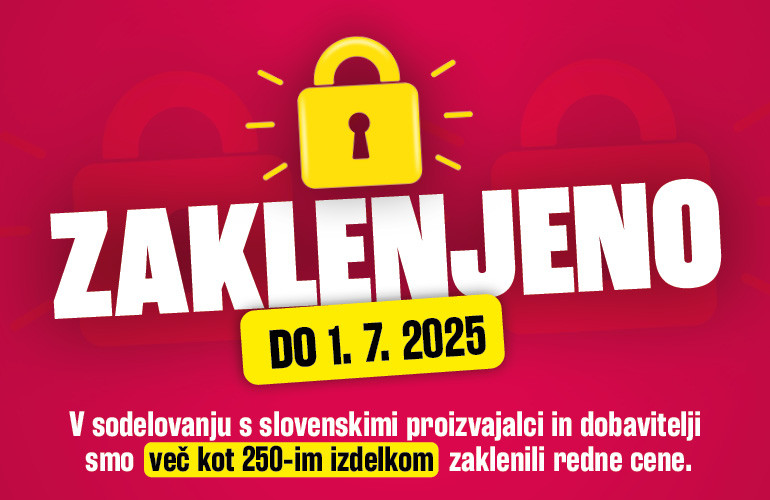 Mercator bo od 27. februarja do 1. julija 2025 zaklenil redne cene več kot 250-im izdelkom slovenskih proizvajalcev in dobaviteljev. Cene zaklenjenih izdelkov se bodo še znižale, ko bodo ti izdelki vključeni v dodatne akcijske ponudbe. Vse zaklenjene cene bodo za kupce tudi jasno označene. Mercator jamči, da zaklenjenih cen do 1. julija 2025 ne bo spreminjal. Med 250-timi izdelki bodo kupci lahko izbirali med širokim naborom mlečnih izdelkov, kruha in pekovskih izdelkov, olji, izdelki sladkega programa, čistil in toaletnih potrebščin itd. Mercator se zahvaljuje slovenskim proizvajalcem in dobaviteljem za sodelovanje v projektu.