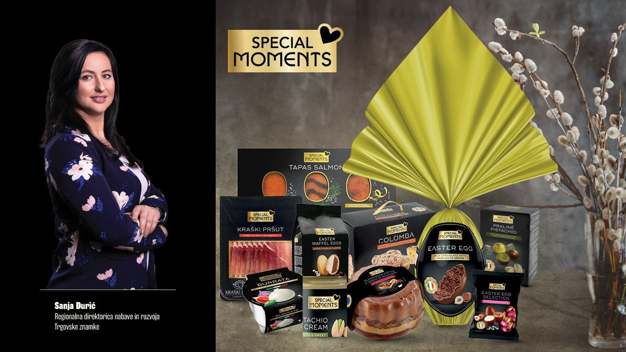 „Razvoj velikonočne ponudbe linije Special Moments je bil izziv, ki smo ga z veseljem sprejeli. Naš cilj je bil ustvariti linijo izdelkov, ki bo našim kupcem omogočila praznovanje velike noči s tradicionalnimi dobrotami, hkrati pa ponudila nekaj novega in posebnega. Pri izbiri izdelkov smo se osredotočili na različne okuse, med jedmi boste tako našli raznovrstne ribje specialitete. Za sladkosnede smo pripravili tudi edinstveno potično torto in tradicionalni italijanski kolač colomba ter vrsto čokoladnih izdelkov. Želeli smo ponuditi izdelke, ki bodo izstopali po kakovosti in prijazni ceni, da bodo praznični trenutki še posebej posebni za vsakega kupca,“ je povedala Sanja Đurić.