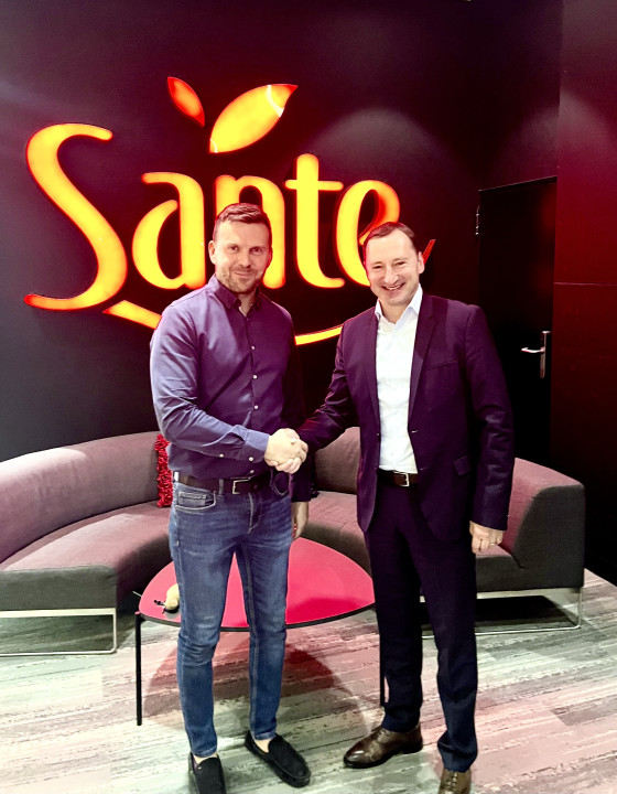 V začetku maja sta direktor podjetja Hmezad Trgovina Žalec, Žarko Furman (na fotografiji desno) in Piotr Kowalski, direktor izvoza podjetja Sante, na sedežu slednjega podjetja v Varšavi podpisala pogodbo, po kateri je distribucijo za slovenski trg prevzela družba Hmezad Trgovina.