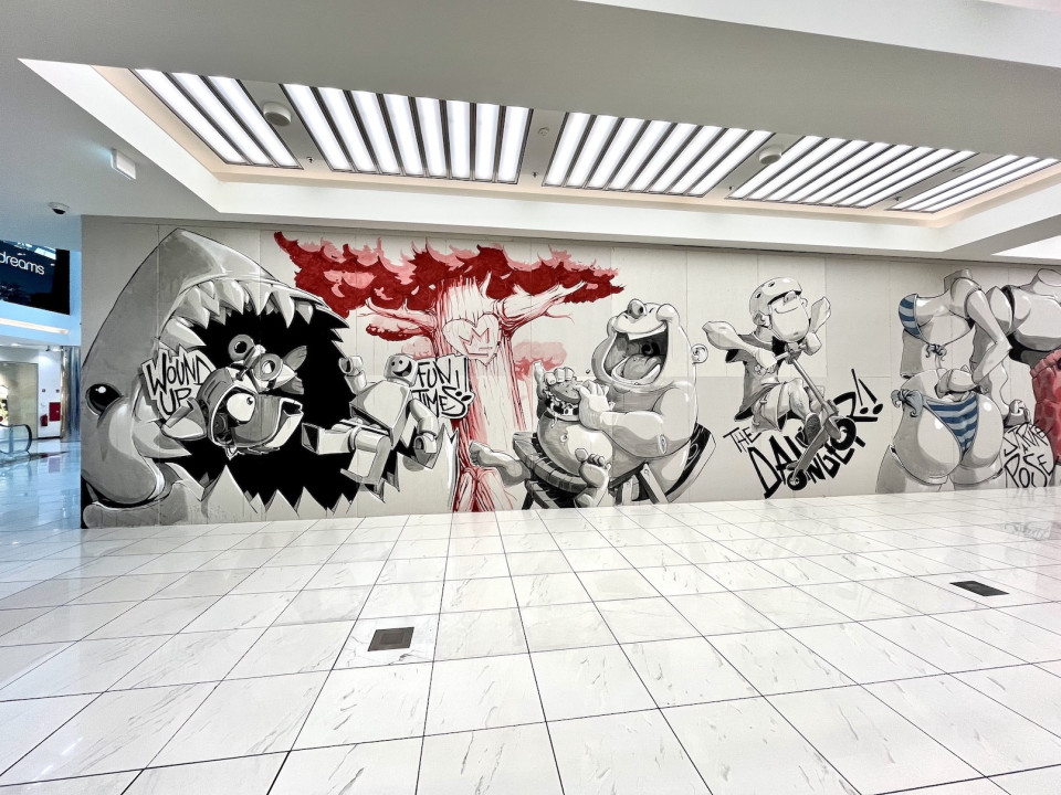 S svojim izrazitim slogom in kombinacijo različnih tehnik je ustvaril mojstrovino, ki v utrip Cityparka vnaša urbanost, barvitost in drznost. Vabljeni k ogledu največje stenske poslikave pri nas.