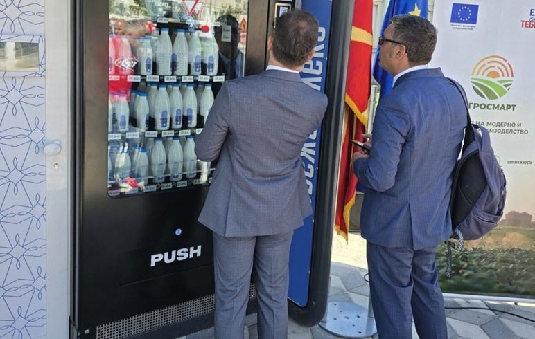 Mlekomat so odprli s sredstvi Evropske unije prek projekta AgroSmart, ki ga izvajajo Makedonska fundacija za razvoj podjetništva (MEDF), Hemera in CEP Možnosti.
