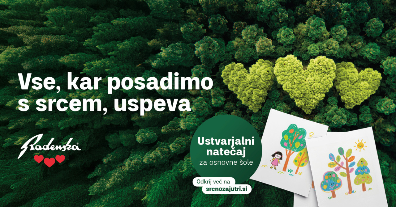 Poleg konkretnih akcij, ki prispevajo k dobrem delovanju gozdnega ekosistema, je vodilna ideja kampanje obnove gozdov tudi ozaveščanje o pomenu gozdov in ekološka vzgoja novih, odgovornih generacij. Da bi osnovnošolci še dodatno razmislili, kaj pravzaprav pomenijo drevesa in gozd – za našo sedanjost in prihodnost, so zanje pripravili ustvarjalni natečaj, v sklopu katerega se lahko izrazijo v poljubni likovno-ustvarjalni tehniki. Avtorska ustvarjalna dela lahko učenci od 1. do 9. razreda OŠ prispevajo od 1. oktobra do 12. novembra 2025 – preko klasične pošte ali e-naslova 3srca@radenska.si. Komisija bo med prejetimi deli izbrala 5 finalistov, med katerimi bo potekalo glasovanje širše javnosti za najboljše oziroma zmagovalno delo. Zmagovalec natečaja prejme paket Radenske (nahrbtnik, majico, idr.), za svoj razred prejme celoletno zalogo vode (2 paleti), matična osnovna šola zmagovalca pa prejme tri drevesa, ki jih bo podjetje Radenska zasadilo na šolskih površinah.