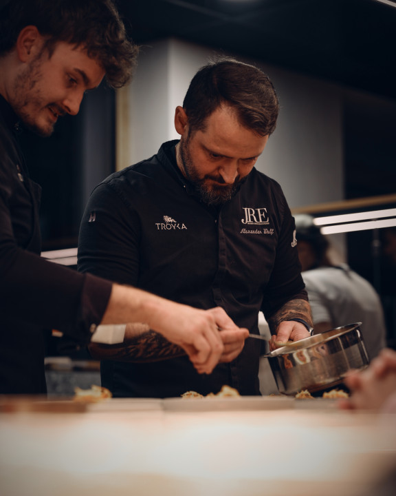 Grič pri tem pogosto povabi gostujoče chefe, tokrat pa je bil to Alexander Wulf iz Bistro Troyka (Nemčija). Njegov avtorski slog, ki združuje natančnost in osebne kulturne vplive, se naravno prepleta z Gričevim delom, temelječim na lokalnosti, fermentacijah in sezonskosti. Namen sodelovanja ni tekmovanje, temveč izmenjava idej, pristopov in strokovnih pogledov na sodobno kuhinjo.