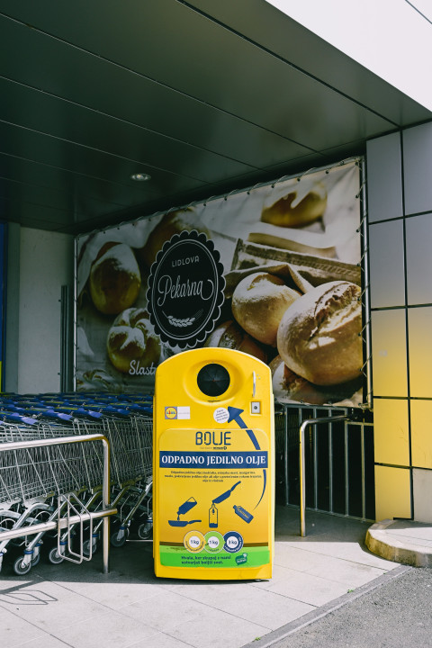 V Lidlu Slovenija so leta 2022 izpeljali pilotni projekt zbiranja in reciklaže odpadnega jedilnega olja pred dvema Lidlovima trgovinama. Zbiralnike so zaradi pozitivnega odziva kupcev in skrbi za varovanje okolja postopoma postavili pred 21 trgovin po Sloveniji. Njihov cilj je, da mrežo zbiralnikov v prihodnosti še razširijo.