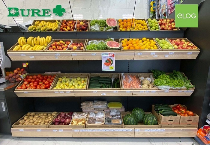 Podjetje Bure d.o.o iz Biograda na Moru je v sodelovanju z Elog d.o.o. oddelke svežega sadja in zelenjave v svojih prodajalnah opremila z wood look večkratnimi zaboji.