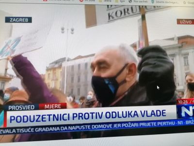 V centru hrvaške prestolnice na Trgu Bana Jelačića je potekal  protestni shod skupnosti UGP-ja (Udruge Glas poduzetnika), s katerim skupnost podjetnikov in obrtnikov izraža svoje nestrinjanje z aktualno vladno politiko, ki jim onemogoča odprtje lokalov.