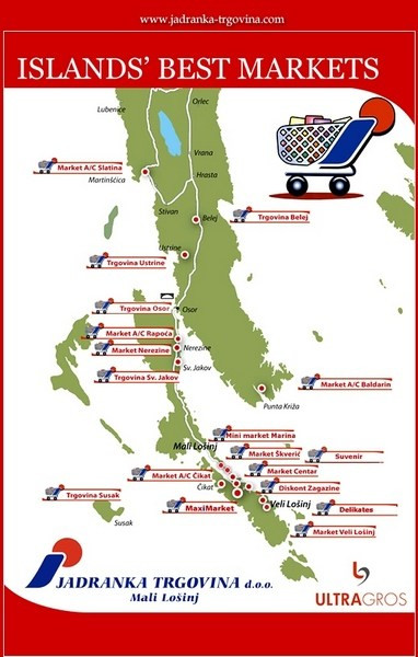 Ob oskrbi hotelov, kampov in gostinskih objektov se Jadranka trgovina ukvarjajo s skrbjo za lokalno prebivalstvo. Prodajalne so odprte vse leto.
