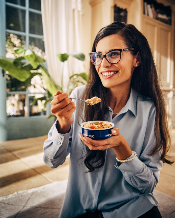 Res je, nagrada za inovativnost nas je razveselila. Linija ribjih solat Delamaris je delo našega razvoja in proizvodnje. Predstavlja priročne obroke, ki lajšajo vključevanje rib v prehrano. Linijo sestavlja pet izdelkov: losos Vital z bulgurjem, tuna Active s kvinojo in lečo, tuna Garden s fižolom in čičeriko, tuna Mexicana s fižolom in koruzo ter orada Mediterana z rdečim rižem. Smo prvi, ki predstavljamo orado in losos v konzervi. Uporabili smo tudi različne stročnice in žitarice.
