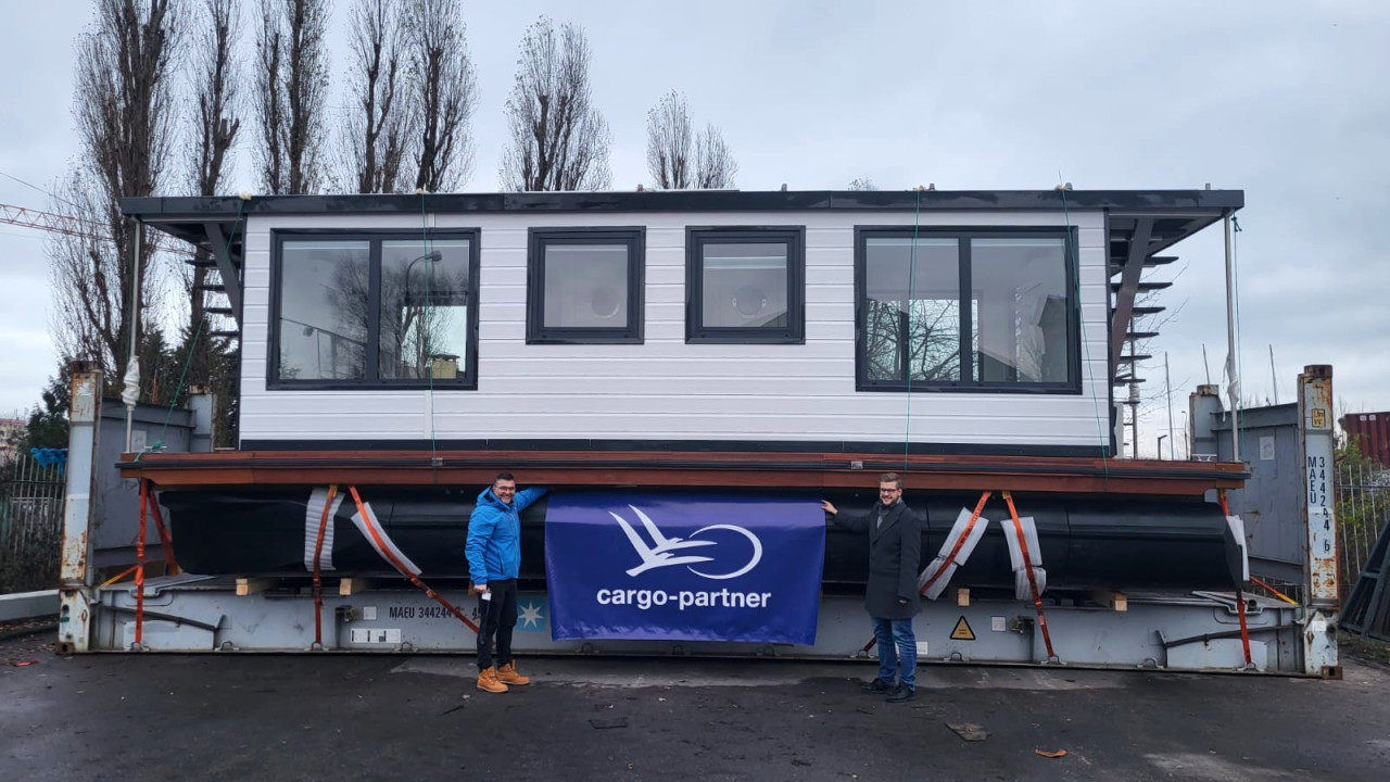 V začetku tega leta je cargo-partner ekipa iz mesta Gdynia organizirala pošiljko dveh plavajočih hiš iz Poljske v Italijo, pri čemer je bila potrebna kombinacija cestnega in krajšega ladijskega prevoza. Obe plavajoči hišni sta skupaj tehtali osem ton in merili vsaka po 10 x 4,2 x 3,5 m. Zaradi nestandardnih dimenzij pošiljke je morala ekipa pridobiti posebna dovoljenja za izredni prevoz ter zagotoviti usposobljenega voznika. Ko je tovor prispel v mesto v Gdańsk so plavajoči hiši varno premestili na dva 40’ odprta zabojnika (flat rack). Ko so strokovnjaki potrdili, da je tovor varno pritrjen, je pošiljka prejela varnostno spričevalo, s čimer je bila omogočena ladijska odprema do Neaplja.