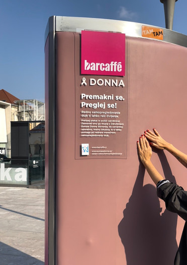 Sporočila kampanje je do žensk na prav inovativen način ponesla tudi omejena serija Barcaffè Donna, ki jo je Barcaffè oblikoval za promocijske namene; ta je poleg mlete kave vsebovala tudi nezmleto kavno zrno, drobno »nepravilnost«, ki je simbolizirala zatrdlino, ki jo lahko zatipamo pod prsti, in ženske inovativno opomnila na vlogo rednega mesečnega samopregledovanja dojk. Dovolj zgodaj odkrit rak dojk je namreč dobro ozdravljiv, zato je pomembno, da ženske zdravje vzamejo v svoje roke. Pomembno pa je tudi, da se samopregledujejo pravilno, zato je Barcaffè Donna z ulično razstavo v muzejski četrti Metelkova ženske navdušil z unikatnim taktilnim plakatom, ki je mimoidoče vabil, da ga pretipajo in poiščejo zatrdline. Izkušnja, vredna več kot tisoč besed.