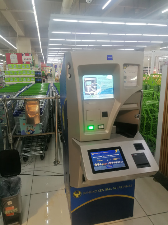 BSP (Bangko Sentral ng Pilipinas) ima ekskluzivno pooblastilo za izdajo kovancev in bankovcev na Filipinih, s predstavniki trgovinske verige SM (Super Market) pa so se dogovorili za postavitev bankomatov v nekaterih trgovinah in namestitev poteka ravno te dni.