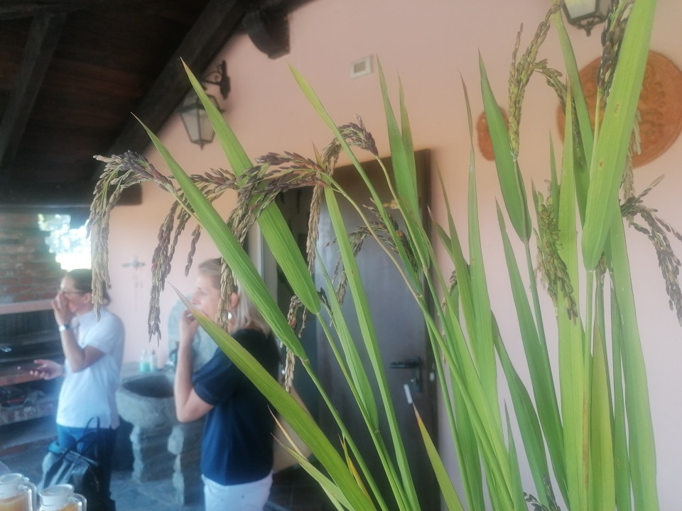 Za začetek smo obiskali riževa polja, kjer je ravno potekala žetev in predstavili so nam Združenje Sa.Pi.Se., s katerim sodelujejo glede preizkušanja riža v tamkajšnjih laboratorijih in na testnih poljih, kjer odkupujejo »zlat« oz. če govorimo o enem izmed zadnjih hitov in Veneri, »črn« zaklad riževega zrnja. Generalni menadžer Sa.Pi.Se-ja, Carlo Minoia nam je ob tem predstavil delovanje Združenja kmetov iz Lombardije oz.Piemonta in Sardinije ter njihovo sodelovanje z podjetjem Rio Scotti, o pomenu vode za pridelavo riža pa je povedal: »Voda je zelo pomembna, vendar je treba poudariti, da riž ne zahteva večje količine vode kot druge kulture. V bistvu je voda pomembna predvsem za vzdrževanje stalne temperature v samih zemeljskih tleh, saj je riž rastlina, ki je občutljiva na nihanje temperature ter na to, da se cikel žetve uspešno zaključi in da dosežemo največjo produktivnost. Količina vode, potrebna za riževo njivo je praktično enaka in identična tisti, ki je potrebna v enem letu za koruzo ali druge žitarice.«