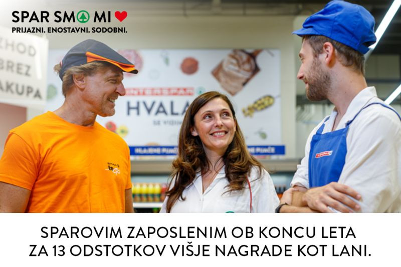 Tudi v letošnjem letu bodo decembra zaposlenim izplačali nagrade ob koncu leta, ki bodo v povprečju za 13 odstotkov višje kot lani. Nagrada, vezana na poslovno uspešnost podjetja, bo obračunana v višini 33 odstotkov plače delavca, do nagrade pa bodo upravičeni vsi Sparovi zaposleni, vključno z odsotnimi.