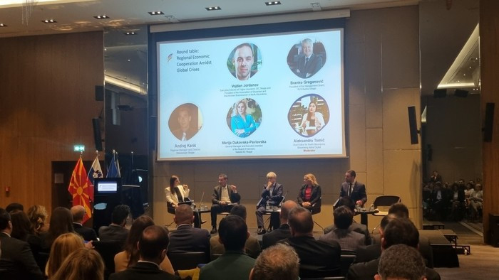 Na okrogli mizi, ki jo je moderirala Aleksandra Tomić, odgovorna urednica medija Bloomberg Adria Severna Makedonija, so panelisti razpravljali o vplivu globalnih kriz in podnebnih sprememb na poslovanje in družbo.