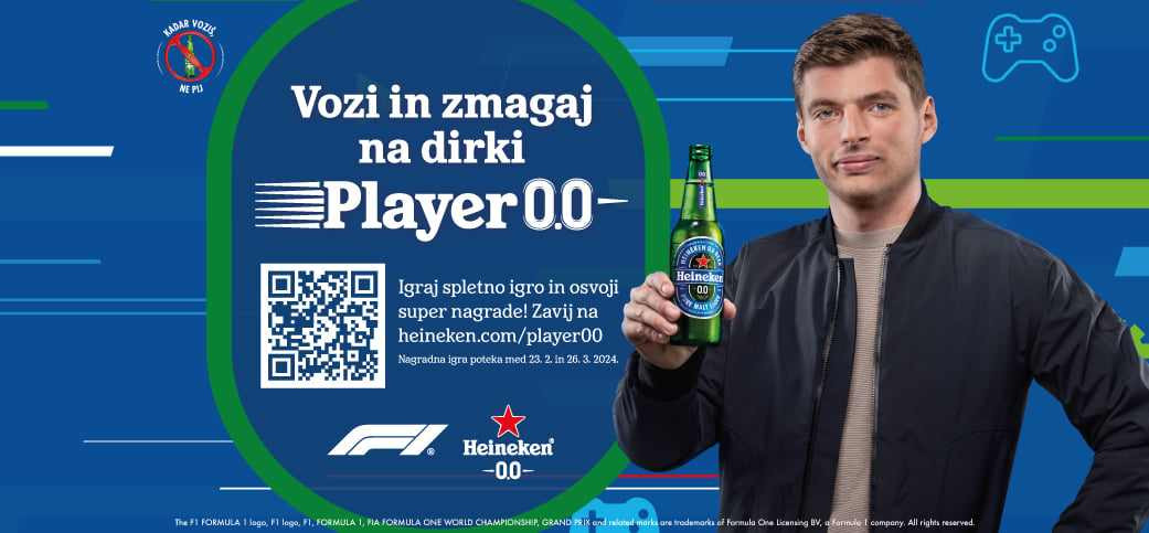 Heineken v sklopu globalne kampanje, s katero že vrsto let opozarja na problematiko voženj pod vplivom alkohola, navdušuje z igričarsko aktivacijo Player 0.0. S spletno dirkaško igro letos med Slovenkami in Slovenci išče najboljšega voznika, ki mu bo omogočil edinstveno doživetje – dirkanje s trikratnim svetovnim prvakom Formule 1 Maxom Verstappnom.
