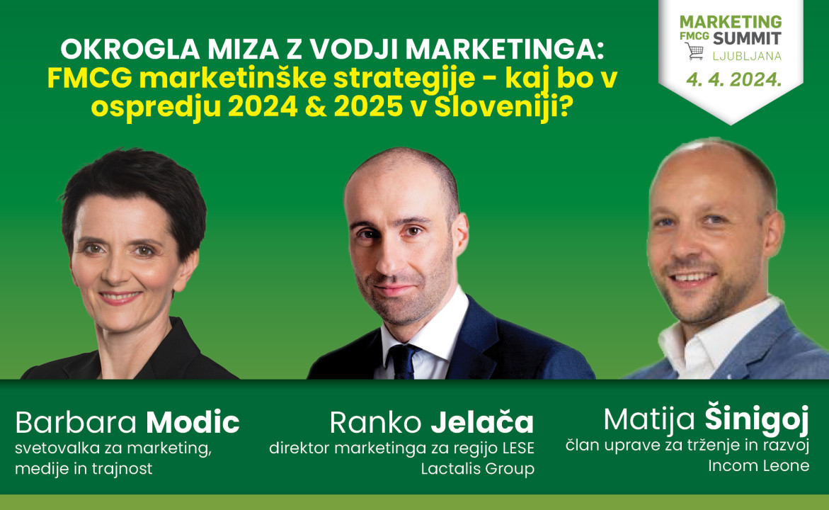 14.20–16.00 OKROGLA MIZA Z VODJI MARKETINGA: FMCG marketinške strategije - kaj bo v ospredju 2024 & 2025 v Sloveniji?