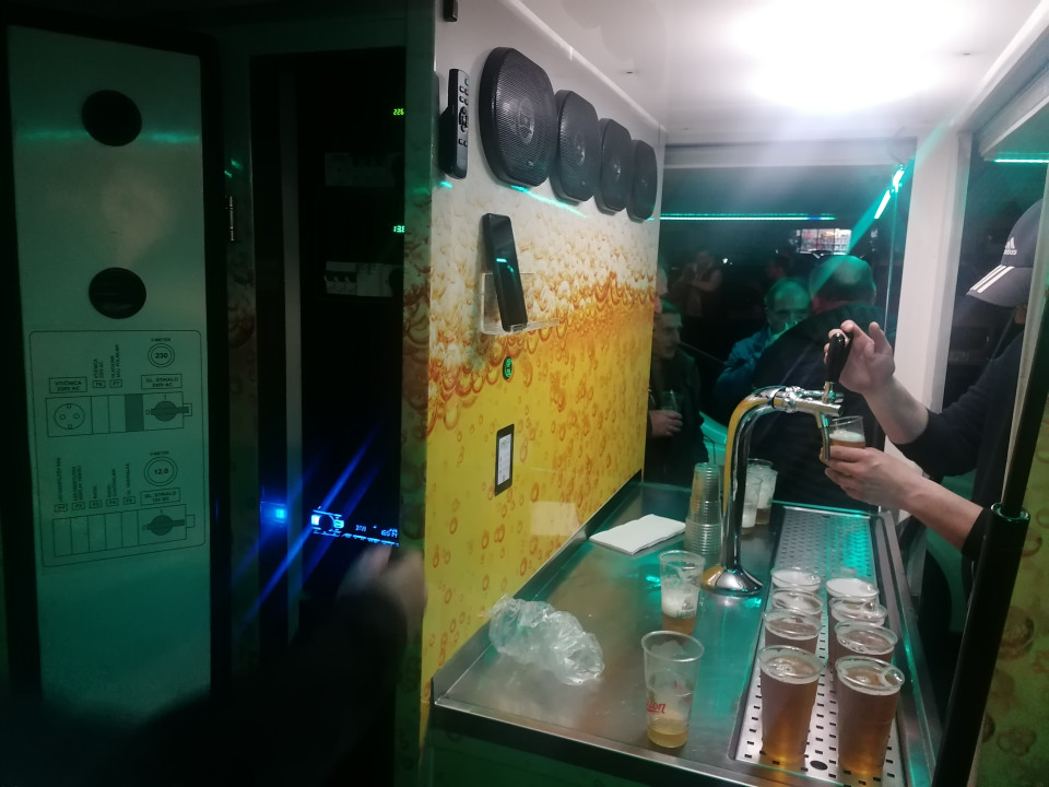 Podobna vozila, ki jih imenujejo "pirmobili", ker največkrat ponujajo ravno pivo na podobnih dogodkih, poznajo predvsem v Nemčiji. Lastnik prikupnega rumenega tovornega vozila znamke Piaggio, Matjaž Rus (na fotografiji) je tam tudi dobil idejo, da naredi nekaj podobnega kar sam. "Ne da bi se hvalil ampak lahko rečem, da mi je uspelo kar dobro delo, saj sem tovornjaček precej predelal in mu dodal neke svoje ideje, ki bi jih lahko kar patentiral (smeh). Moj "kamionček" namreč omogoča dodatni dve uri hladnega prostora tudi brez povezave na elektriko, ki jo potrebujemo za hlajenje vsega kar je v hladilnem prostoru, kjer pa ni nujno samo pijača ampak je lahko tudi kako meso ali drugo živilo, poleg tega sem naredil tudi neke lepotne popravke in vgradil glasben stolp z močnimi zvočniki," je povedal ljubitelj košarke ter navijač Vrhničanov.