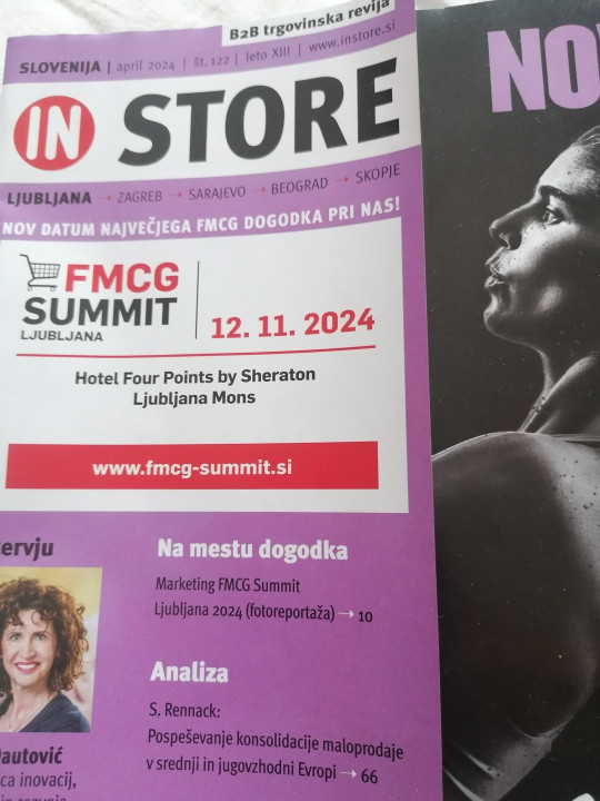 Nov InStore na uvodnih straneh, tako kot vedno, ponuja nabor pregleda novih objektov oz.trgovin doma in v regiji. Na naslovnici in v "drobovju" revije seveda opisujemo v sliki in besedi naš 1.FMCG Marketing Summit, ki je bil 4.aprila v ljubljanskem hotelu Four Points by Sheraton Mons.v