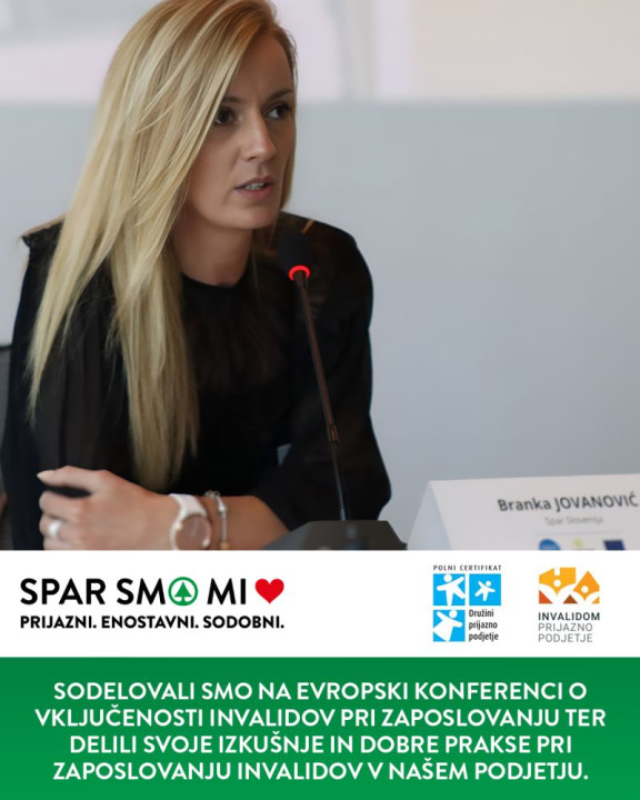 Branka Jovanović (na fotografiji), strokovna sodelavka v HR oddelku Spar Slovenije, ki skrbi za vključevanje invalidov, je na konferenci izpostavila: