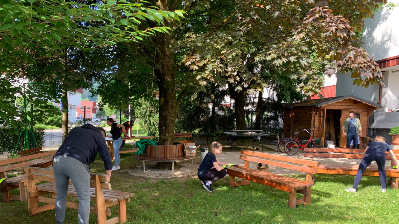 Prostovoljci iz podjetja so se udeležili različnih aktivnosti, ki so obsegale urejanje vrta, obnovo vrtnega pohištva, polaganje tlakovcev in čiščenje oken. Del skupine se je odpravil tudi do Zaposlitvenega centra, kjer so pomagali pri izdelavi lesenih izdelkov.