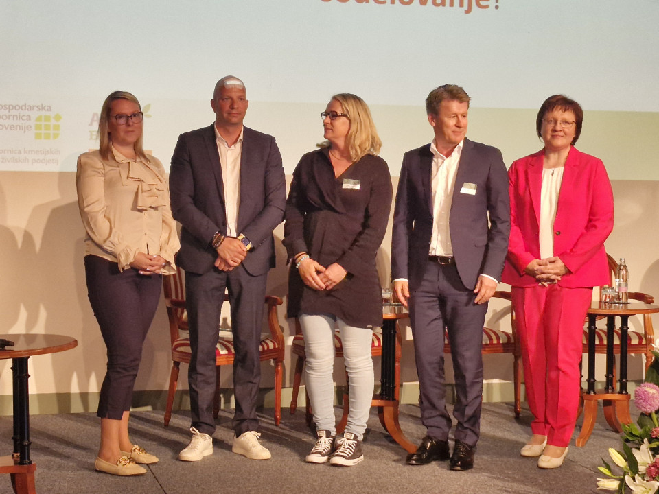 Na fotografiji od leve proti desni: Mateja Čalušić (ministrica za kmetijstvo, gozdarstvo in prehrano), Gorazd Bedenčič, Špela Smuk, Enver Šišić in Tatjana Zagorc.