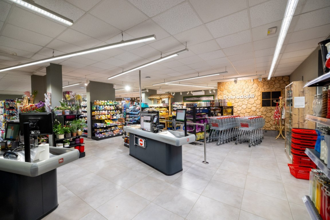 Za kakovostno ponudbo in prijetno nakupovalno vzdušje v njej skrbi 7 zaposlenih, na voljo pa je tudi 40 parkirnih mest.