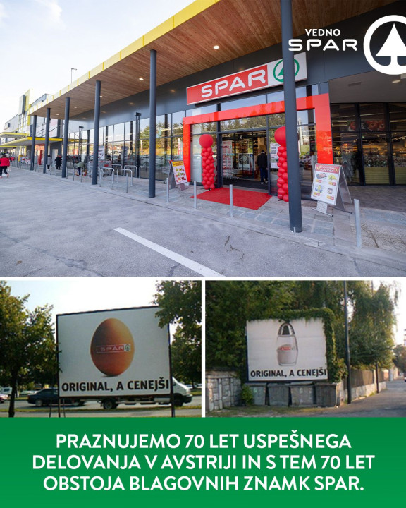 | Spar je sicer nizozemska mednarodna trgovska veriga z več kot 13.300 trgovinami v 48 državah po svetu, pri čemer vsako podjetje v posameznih državah deluje popolnoma samostojno in med seboj neodvisno. SPAR, ki ga je v Sloveniji ustanovil avstrijski koncern, že od vstopa na trg sledi jasnim smernicam delovanja – ponuditi najboljše razmerje med kakovostjo in ceno, zagotoviti široko in pestro izbiro, poskrbeti za vedno sveže izdelke in družno delati za zadovoljstvo vsakega kupca. |
