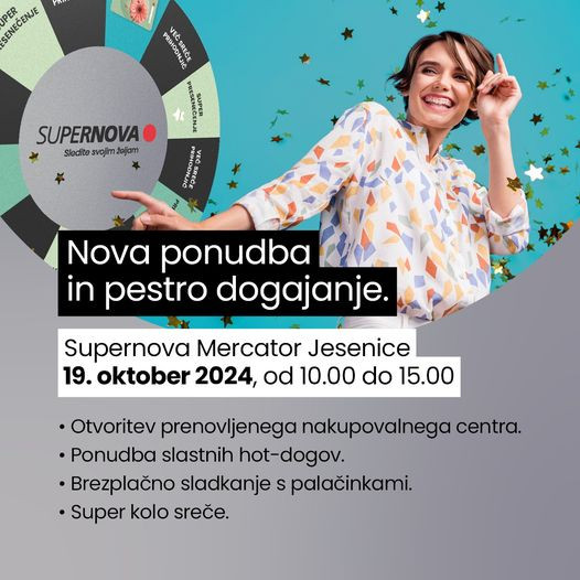 Iz Supernove napovedujejo, da bo Supernova Mercator Jesenice v soboto, 19. oktobra, ob 10.uri odprla vrata s prenovljeno podobo in novimi najemniki.