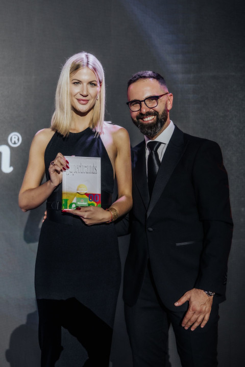 Na super dogodku v organizaciji Superbrands Slovenija je nagrado prevzela vodja blagovne znamke Heineken Katja Sabadin (na fotografiji z vodjem projekta Superbrands Boškom Praštalom).