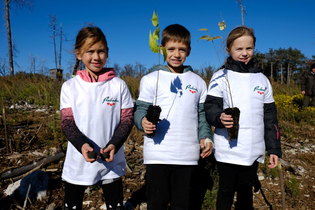 V Radenski Adriatic gozdove obnavljajo že peto leto, letos prvič s pomočjo brezpilotnih letalnikov (dronov) in posebnih semenskih bombic, ki omogočajo hitro pogozdovanje velikih in težje dostopnih površin. Doslej so posadili že več kot 80.000 dreves, z aktivacijo 11.434 brezplačnih kuponov na spletni strani www.srcnozajutri.si, pa so tokrat postavili nov mejnik. V sodelovanju s potrošniki in organizacijo Project O2 so namreč poskrbeli za ozelenitev 10.000 m2 kraških pogorišč, kjer se gozdno rastje po dveh letih od največjega požara v zgodovini Slovenije še vedno ni uspelo obnoviti po naravni poti.