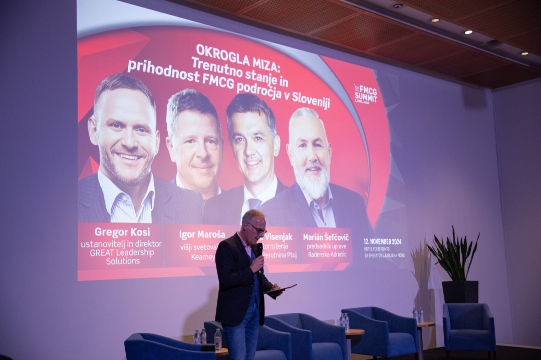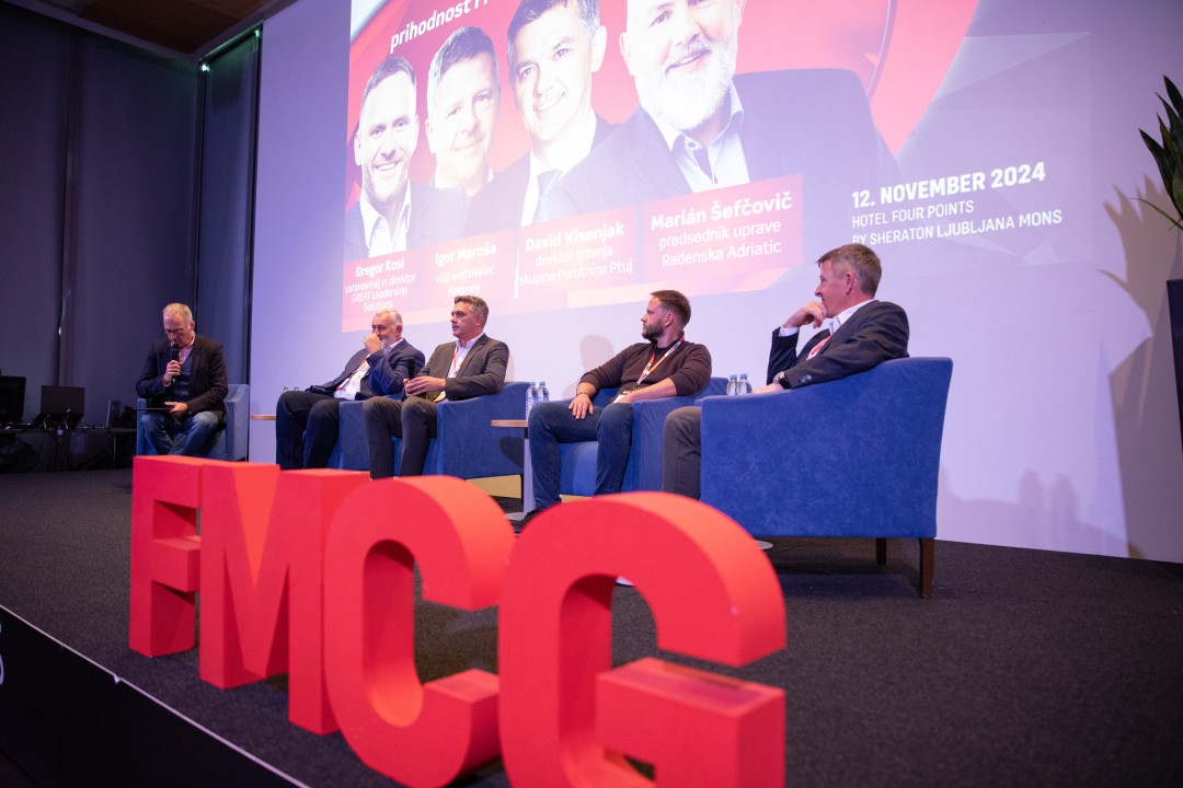 Včeraj se nas je v ljubljanskem hotelu Four Points by Sheraton Mons zbralo skoraj 300 udeležencev s področja FMCG (trgovcev, proizvajalcev, distributerjev, specializiranih podjetij in agencij). Prisluhnili smo predavanjem Katje Bizjak (Nielsen IQ), Jerice Urbančič Menih ( Mediana), Kristijana Matijaševića (Abnormal), Sebastiana Rennacka (Aletos), Vesne Marđonović (Stars Ltd.), Darka Lukića (AMMC) in okrogli mizi o prihodnosti maloprodaje in FMCG industrije v Sloveniji na kateri so sodelovali: Igor Maroša, višji svetovalec, Kearney, Gregor Kosi, izvršni direktor, GREAT Leadership Solutions in dolgoletni generalni direktor Lidl Slovenija, David Visenjak, Perutnina Ptuj, glavni izvršilni direktor za komercialo in član uprave, odgovoren za področje trženja ter Marian Šefčovič, Radenska Adriatic, predsednik uprave. Moderator je bil Igor E. Bergant.