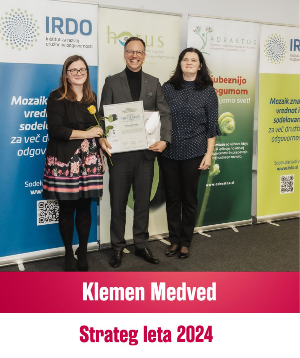 Klemen Medved, vodja področja ESG, je prejel posebno priznanje Strateg leta 2024 za družbeno odgovornost in trajnostni razvoj.