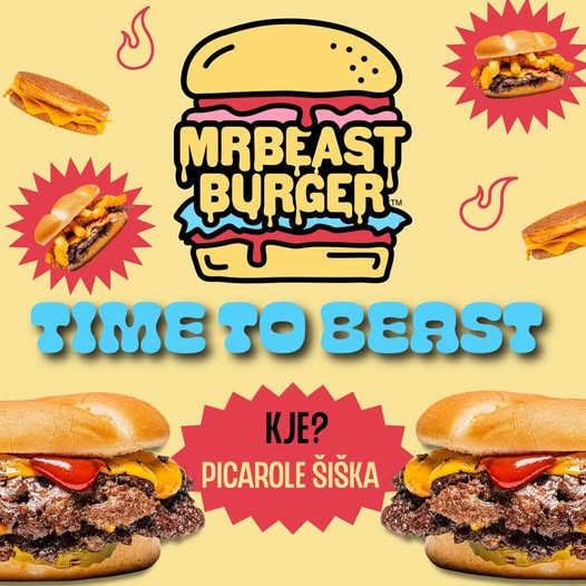 Mr. Beast Burgerje so začeli prodajati v lokalu Picarole na Celovški cesti 179 a, možnost izbora pa je med štirimi različnimi burgerji, ki so že navdušili svet, tremi različnimi sendviči ter krompirčkom z dodatki ali brez.