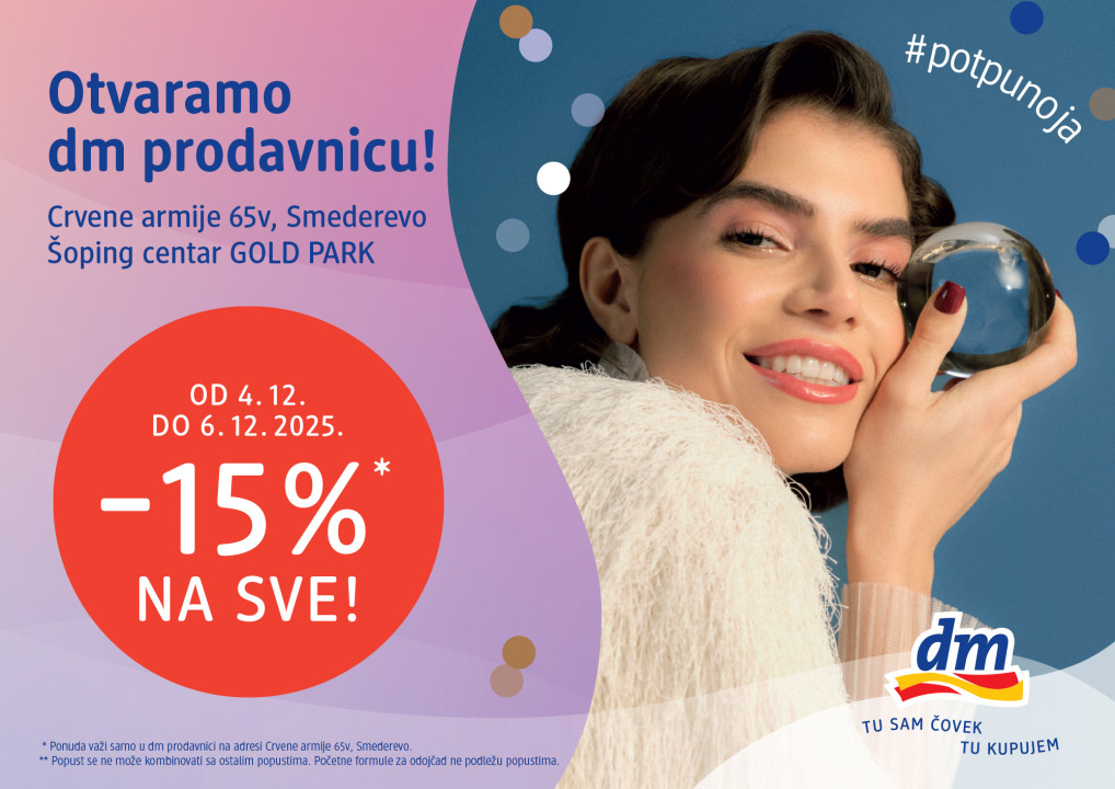 Ljubitelji dm iz Smedereva lahko odslej uživajo v nakupovanju v novem, sodobnem in prepoznavnem vzdušju trgovine, s široko ponudbo priljubljenih izdelkov, so sporočili iz drogerijske verige.