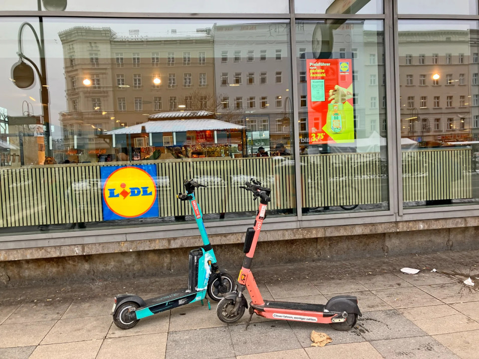 Lidl privablja mlajše in bolj mobilno občinstvo kot je to počela nekdanja veleblagovnica, kar kaže na nove logistične izzive za stranke, opazne skozi električne skuterje, parkirane pred skupno lokacijo.