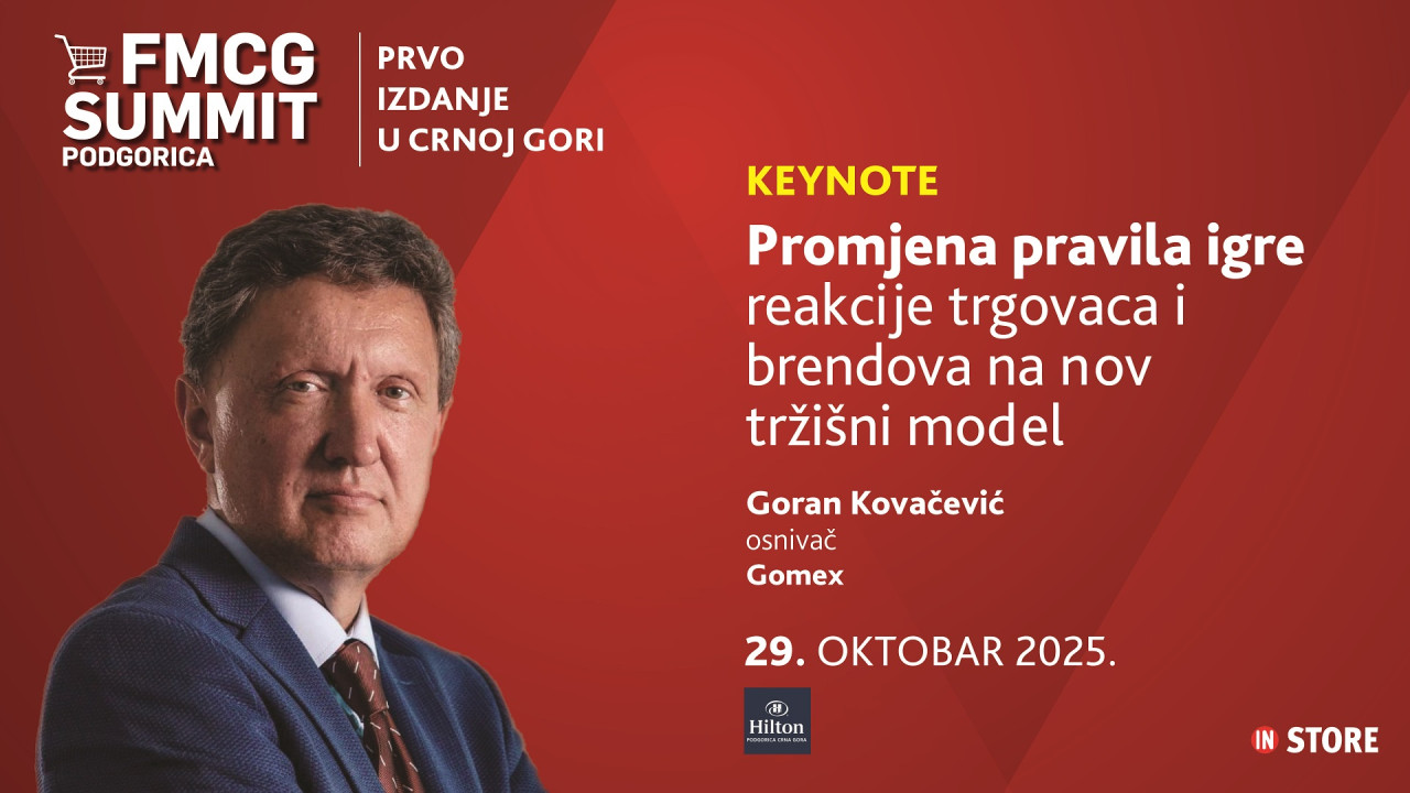 FMCG Summit Podgorica - po prvi put u Crnoj Gori, sektor maloprodaje, proizvodnje i distribucije dobija centralno mesto okupljanja i razmene znanja, iskustava i poslovnih prilika!