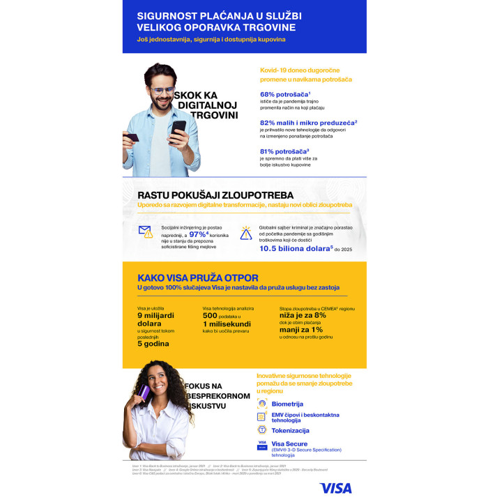 Ekspert kompanije Visa je istakao da potrošači koji se sve više okreću onlajn kupovini u produženoj kovid eri nisu svesni pretnji i činjenice da mogu biti u opasnosti. Socijalni inženjering je postao napredniji, a 97 odsto potrošača nije u stanju da prepozna dobro skrojene mejlove za krađu identiteta.