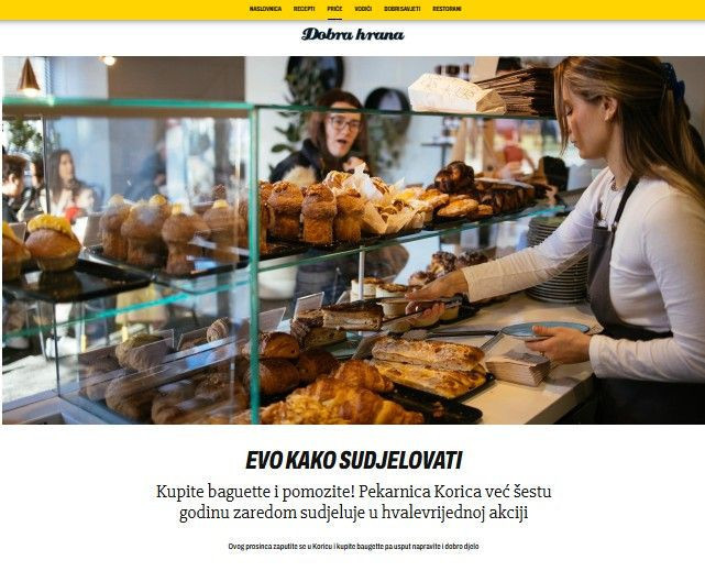 Jedan od najkonkretnijih primjera takvog pristupa vidljiv je u prosincu, koji je već sedam godina zaredom u Korici povezan s društvenom odgovornošću. Svake godine unaprijed je određen iznos od prodaje svake bagete koji se donira jednoj organizaciji civilnog društva. U 2025. godini, u sklopu sedme kampanje, podržana je udruga Nismo same, kojoj je donirano 2.416,60 eura. Ukupno je kroz sedam godina Korica podržala šest različitih udruga, uz donacije u iznosu od 13.419,07 eura.