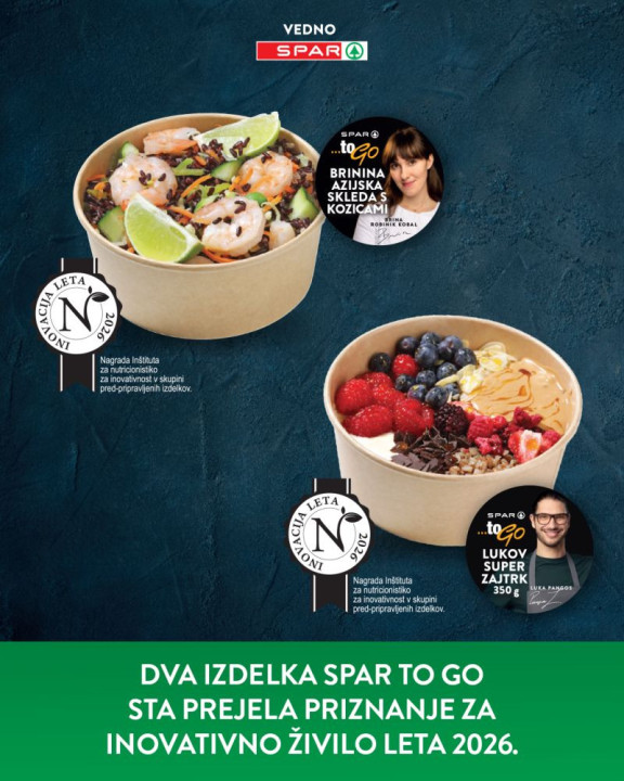 Prestižnu titulu inovativne namirnice godine 2026. osvojili su Brinina azijska zdjela s kozicama, nastala u suradnji s cheficom Brinom Robinik Kobal, te Lukov super doručak, koji je kreirao chef Luka Pangos. Oba proizvoda objedinjuju pažljivo odabrane sastojke, uravnoteženu nutritivnu vrijednost i izvrstan okus.