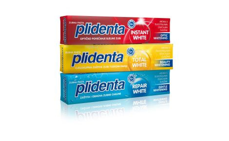 Plidenta predstavlja jedinstvenu kompletnu whitening njegu za sjajne zube od tri zubne paste s posebnim specijalnim sastojcima za sve potrebe njege sjajnih zubi, nakon koje će zdraviji, presjajan osmijeh konačno biti moguć.