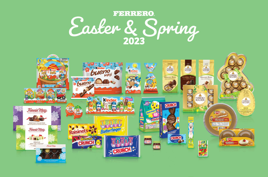 Uskršnji asortiman, s druge strane, uključuje Ferrero Rocher Easter Milk Hollow Egg, Ferrero Rocher Golden Eggs, Kinder Bueno Mini, Butterfinger Minis Basket Filler, Butterfinger Minis i Crunch Minis.