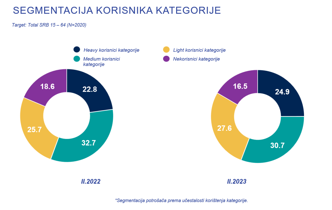 Kategorija keksa ima blagi trend rasta u pogledu ukupnog broja konzumenata, što pokazuju i podaci iz poslednjeg merenog perioda u novembru 2023. godine, kada je kategoriju koristilo 83% potrošača u starosnoj grupi od 15 do 64 godina, makar i povremeno. U maju 2019. kategorija je počela blago da raste. Kada posmatramo potrošače na osnovu frekvencije upotrebe, uočava se blagi rast heavy i light korisnika, dok je manji procenat potrošača koji nikada ne konzumiraju kategoriju keksa svih vrsta.