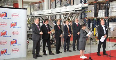 Svečani otvoritvi nove stavbe in predstavljanju novega izdelka „Bref Duo Stick" so ob županu Kruševca Bratislavu Gašiću prisostvovali tudi najvidnejši vodilni možje iz Henkla.