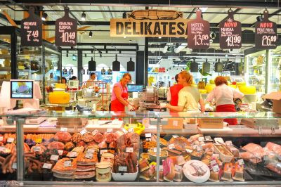 Tudi v mesnici je omogočen pogled v "zakulisje", saj steklena stena omogoča ogled priprave in rezanja mesa, v mesnici so tudi hladilniki za zorenje mesa, ponujajo vrsto mednarodnih specialitet. Na oddelku delikatese visijo pravi pršuti in zorijo hlebci sira, medtem ko v pekarni kupci lahko spremljajo mesenje, pripravo in peko kruha. Slaščičarske izdelke bodo prodajalci pripravljali in okraševali po želji kupcev in pred očmi kupcev. Tudi ribarnica je večja in sodobnejša z veliko izbiro svežih in zamrznjenih rib, ki jih vsakodnevno dostavljajo. Potrošnikom bo na voljo tudi oddelek z mednarodnimi specialitetami, na katerem bodo kuharski dogodki in degustacije.